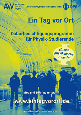 Das vom Arbeitskreis Industrie und Wirtschaft der Deutschen Physikalischen Gesellschaft initiierte Laborbesichtigungsprogramm "Ein Tag vor Ort" bietet Physik-Studierenden Einblick in typische Arbeitsplätze von Physikern und Physikerinnen in einem industriellen Umfeld. Das Programm wird in Zusammenarbeit mit namhaften Unternehmen und Instituten angeboten.mehr...