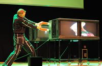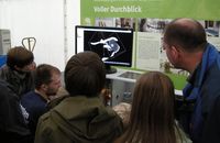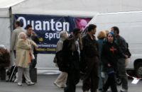 In der Ausstellung geht es daher sowohl um die Grundlagen der Quantenphysik, als auch um deren Anwendung im Alltag. „Die Besucher erfahren, was Quanten sind und was sie mit Solarzellen und Gehirnströmen zu tun haben“, schildert Wassermann. Neugierige können jedoch nicht nur zuschauen, sondern auch selbst aktiv werden. „Per Laserstrahl können die Besucher ihr Abbild in Glas verewigen. Außerdem kann man auf einer frei schwebenden Plattform Pirouetten drehen.“ Das Schweben beruht auf der „Supraleitung“. Dieser Quanten-Effekt kann für die Lagerung beweglicher Maschinenteile genutzt werden, berichtet Wassermann. Der Clou: Die Maschinenteile werden berührungslos und somit verschleißfrei geführt. Tatsächlich arbeitet die Industrie bereits an Motoren, die sich dieses Prinzips bedienen.