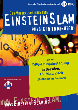 Physik ist eine trockene Angelegenheit mit vielen Fachbegriffen, Formeln und unbegreiflichen Gedankengängen. So das gängige Vorurteil, welches im Alltag gar nicht so falsch ist. Beim EinsteinSlam auf der DPG Frühjahrstagung der Sektion Kondensierte Materie in Dresden am 16. März 2020 im Audimax beweisen Wissenschaftlerinnen und Wissenschaftler, dass dieses Vorurteil falsch ist.