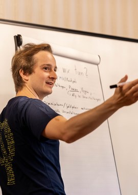 The A-Team Scientific Programme develops, shapes and plans the scientific activities for the jDPG. We serve as a contact point for organising teams for all events with a scientific character. The core of the scientific programme is formed by the annual Theoretician workshop, weekend seminars and the summer excursion. The A-Team also plans excursions throughout Germany.mehr...