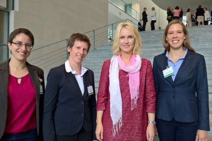 Bundeskanzlerin Merkel empfing kürzlich über einhundert Expertinnen und Experten sowie Nachwuchskräfte, um mit ihnen über ihre Erfahrungen zur Vereinbarkeit von Familie und Beruf zu sprechen. Am Rand der Gespräche trafen sich Vertreterinnen der jDPG und des AKC mit Bundesfamilienministerin Manuela Schwesig.