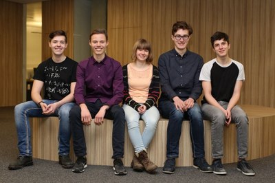 Foto: Sie vertreten Deutschland auf der kommenden Physik-Weltmeisterschaft, dem IYPT in Peking: Paul Linke, Toni Beuthan, Saskia Drechsel, Frederik Gareis und Martin Link (v.l.n.r).