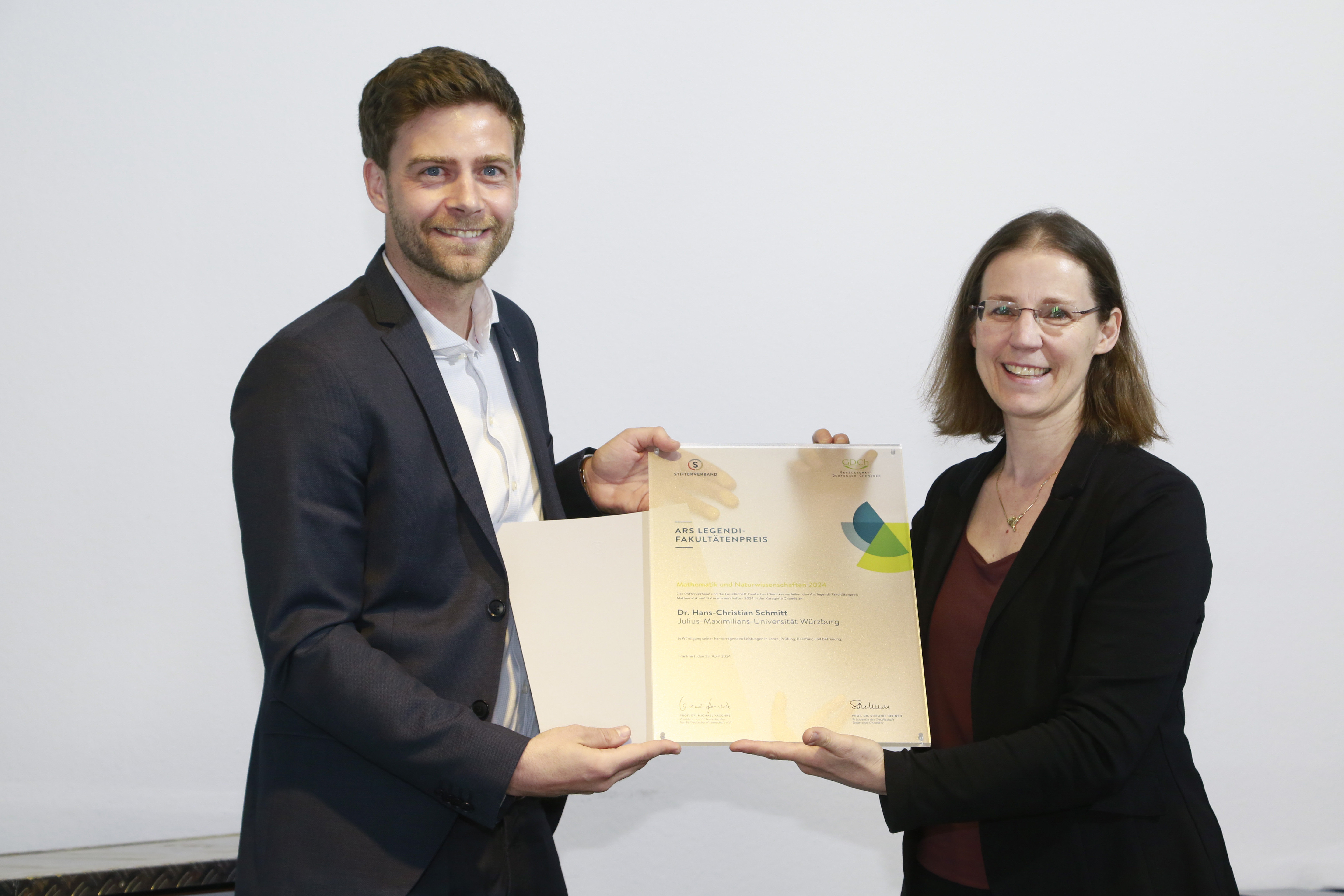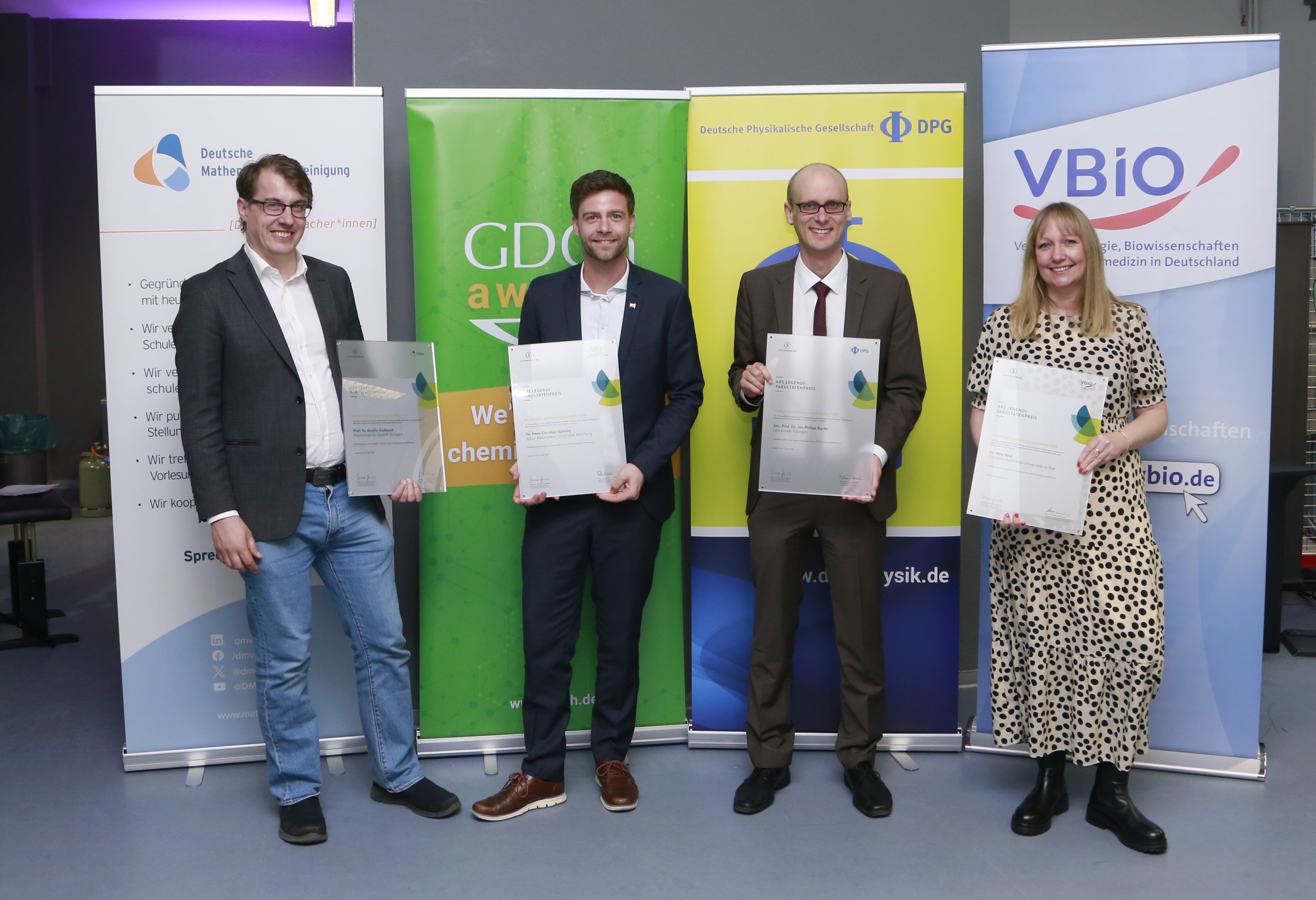 Der Ars legendi-Fakultätenpreis für exzellente Hochschullehre in Mathematik und den Naturwissenschaften geht in diesem Jahr an Nina Keul von der Christian-Albrechts-Universität zu Kiel (Biologie), Hans-Christian Schmitt von der Julius-Maximilians-Universität Würzburg (Chemie), Anselm Knebusch von der Hochschule für Technik Stuttgart (Mathematik) sowie an Jan-Philipp Burde von der Universität Tübingen (Physik).