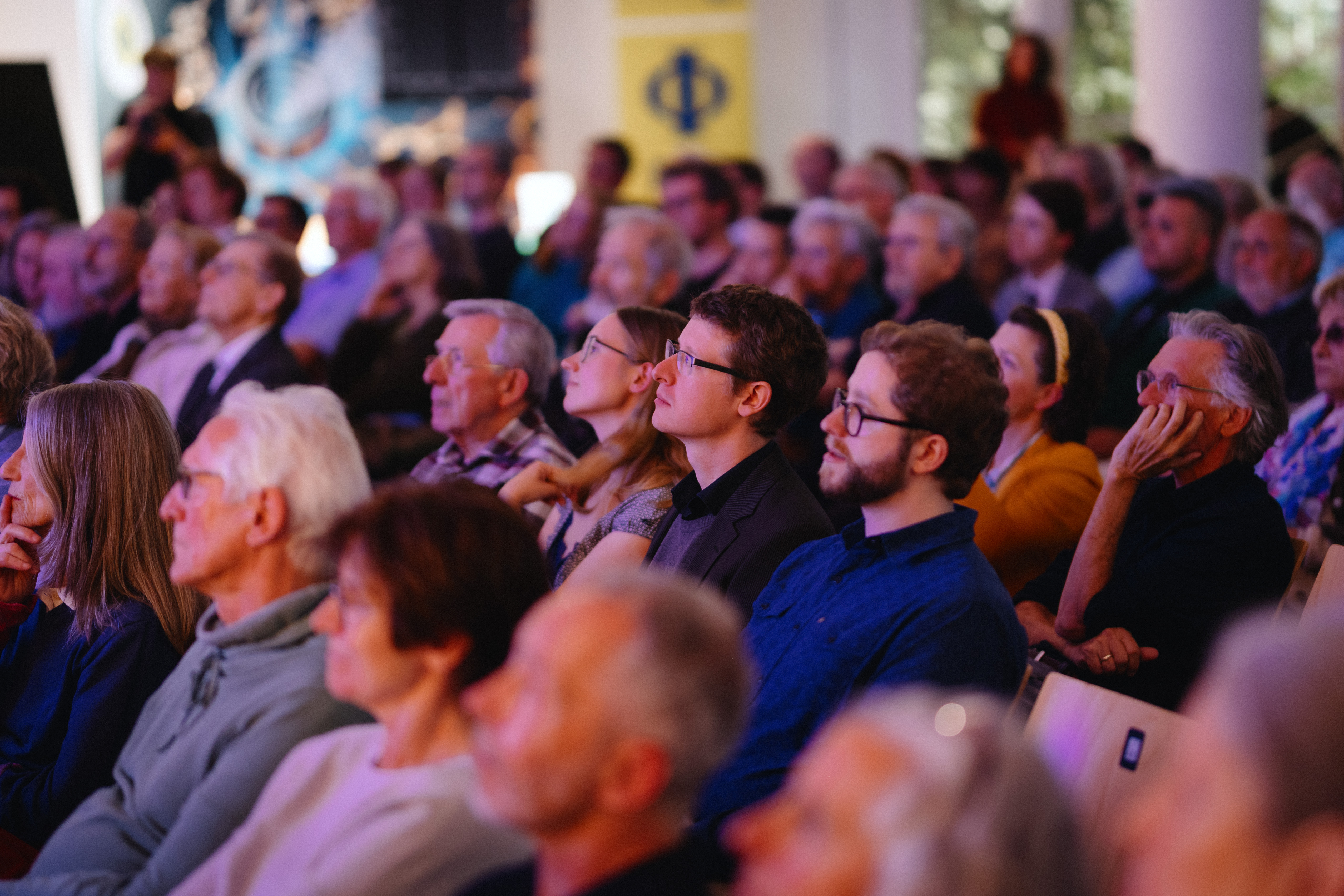 Prof. Dr. Wolfgang Schleich bot auf unterhaltsame und anschauliche Weise Einblicke in die Anfänge der Quantenphysik und stellte über relevante Persönlichkeiten dieser Ära den Bezug zur bildenden Kunst und Musik her. Wie die komplexe und abstrakte Quantenphysik durch Kunst greifbarer gemacht werden kann, verdeutlichte der Illustrator Harald Ritsch, der dem Publikum einen Einblick in seinen eigenen künstlerischen Schaffensprozess gab. Umrahmt wurden beide Vorträge durch improvisierte Stücke der Violinistin Rita Nakad.