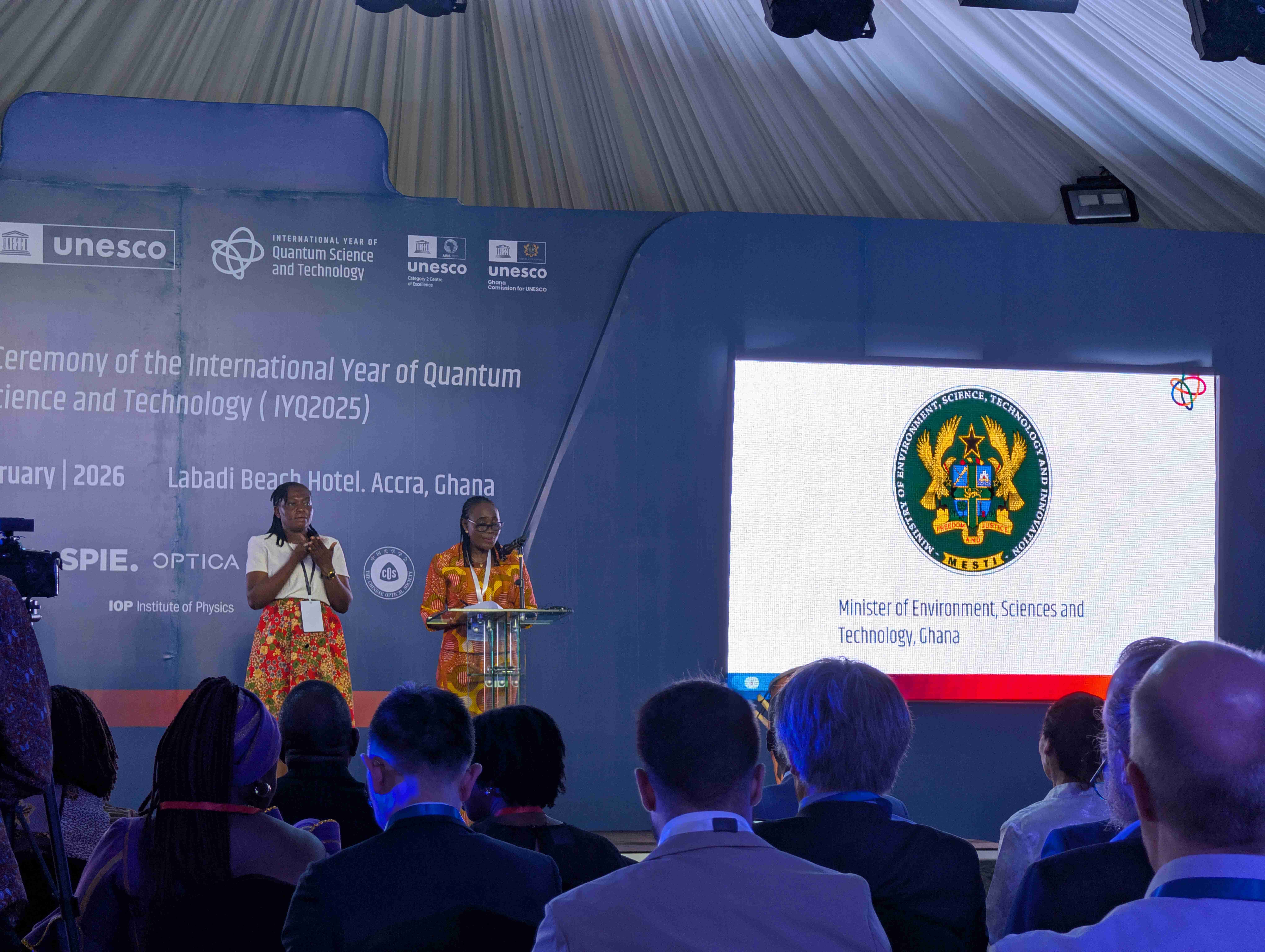 Die feierliche Zeremonie am 10. und 11. Februar bildete einen würdigen Abschluss für das Jahr und brachte dabei Vertreter:innen aus Wissenschaft, Politik, Wirtschaft und Bildung zusammen. Gastgeber der Abschlussveranstaltung war das Land Ghana, welches bereits im Vorfeld wesentlich dazu beitrug, dass die UN-Generalkonferenz das gesamte Jahr 2025 zum Quantenjahr ausgerufen hatte. Im Fokus der Veranstaltung stand nicht nur der Rückblick auf die vielfältigen durchgeführten Aktivitäten, sondern auch der Blick in die Zukunft.
